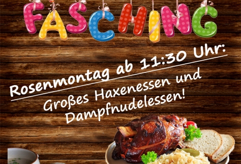 Großes Haxen- und Dampfnudelessen am Rosenmontag